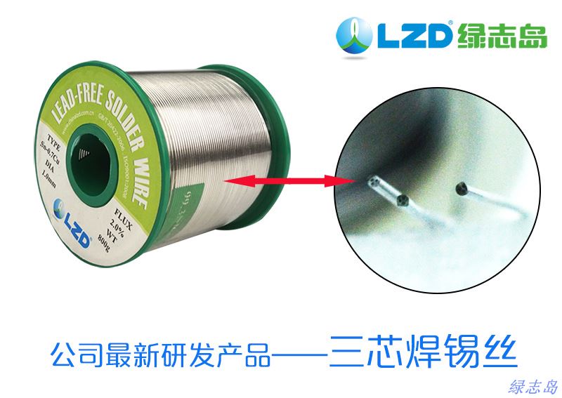 東莞焊錫廠綠志島焊錫最新研發的系列松香焊錫絲,由傳統的單芯錫絲升級為三芯焊錫絲,助劑配方的改進含量的提高使得三芯焊錫絲的飛濺減少、清潔焊接位的氧化物使焊料鋪展出來增強了流動性,具有優異的焊接性能,提高了焊接可靠性,配以不同的合金組成,能滿足各個領域的客戶需求;環保型焊錫絲通過SGS檢測,符合國際國內相關標準。產品采用高純度環保錫錠、獨特助焊劑配方生產。生產中個環節嚴格執行ISO質量管理體系的標準要求,使用德國斯派克直讀光譜儀管控產品品質,使我公司生產的焊錫絲能夠滿足客戶需求。